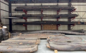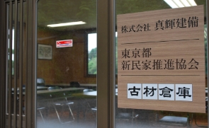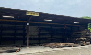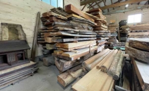 メインの古材倉庫。柱・梁などの構造材がストックされています。