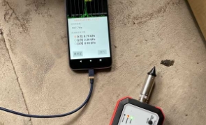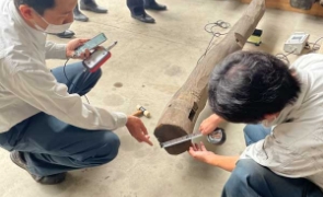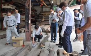 専用の機器で木材の強度測定(ヤング係数)、含水率の測定を行います。
